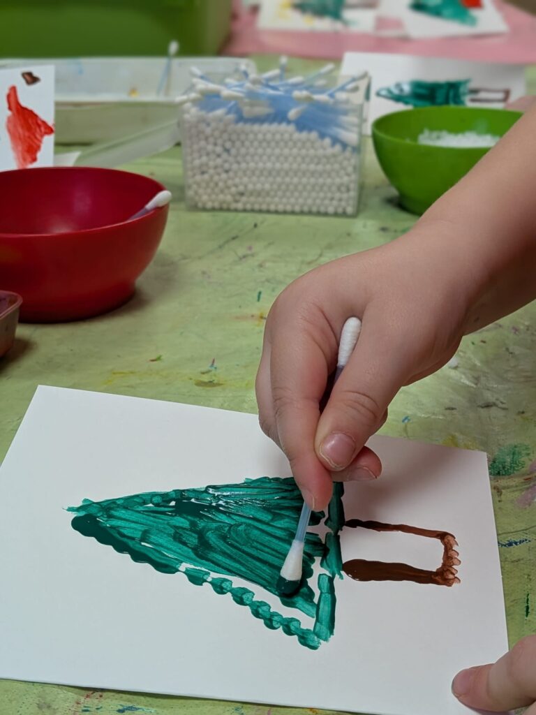 Der Förderverein verkauft in der Vorweihnachtszeit 2025 liebevoll selbstgemachte Werke unserer Kinder. Die jüngsten, unsere U3 Kinder, gestalten zauberhafte Tannenbaumdekoration aus Salzteig.
